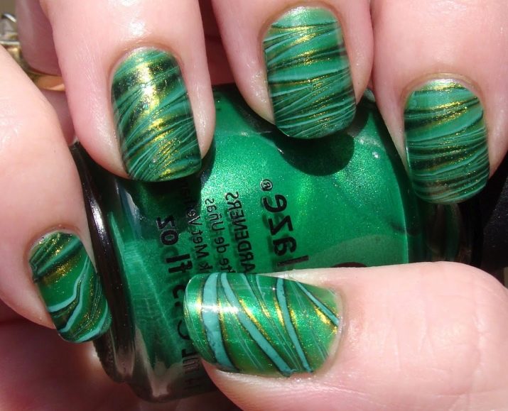 Stylister rådgiver om at kombinere grønt med blå nuancer. En sådan dristig manikyr, som ikke mange er enige om at gøre.