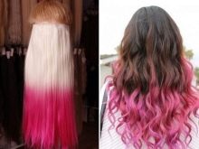 Ved fastgørelse af nøster, der er flere nuancer lettere end naturligt hår, oprettes en moderigtig ombre. Plusset er, at du kan undvære yderligere hårfarve. Den største fordel ved at bruge falskt hår er deres harmløshed. Men det er bedre at købe syntetiske tråde i betroede butikker eller bestille fra officielle websteder for at undgå irritation, allergi og ikke at købe produkter lavet af materialer af lav kvalitet. Overheadstrenge i høj kvalitet kan bruges til at skabe smukke og originale frisurer til børn.
