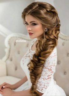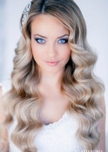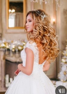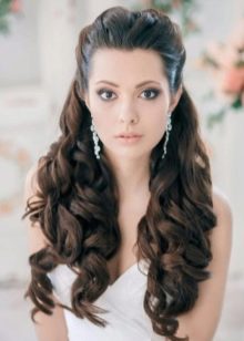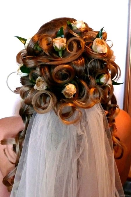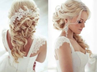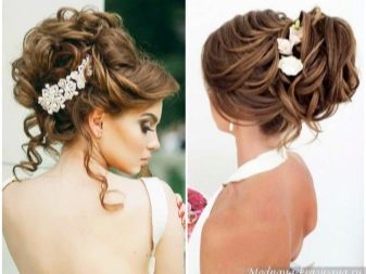 Således kan du vælge den øverste del af stylingen og lade de nederste krøller være fri. Du kan også samle alt håret i en volumentrulle, dekorere styling med rhinestones, blomster, en diadem og delikate krøller af tråde i forskellige længder.