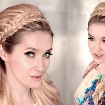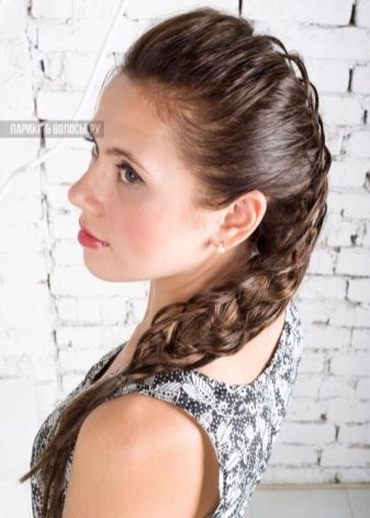 Hvis en hestehestehale viser sig at være en idé om et strengt kontorudseende, kan en stram fletning eller fletning af falskt hår bruges til at skabe en festlig styling. Produktet skal fastgøres ved bunden af naturligt hår og lægges på hovedet med en fælg. I dette tilfælde kan håret være af en hvilken som helst længde, det kan efterlades løst eller samlet i en skal eller et tæt bundt.