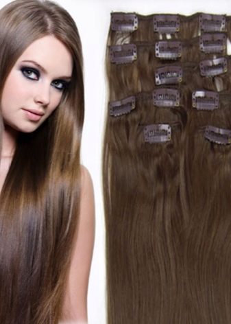 - Der er produkter, der er fastgjort til frisyren ved hjælp af forskellige hårklip. Oftest er krøller knyttet til et klip eller en "krabbe".