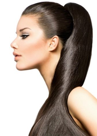 Den næste mulighed til daglig styling kan være en høj og glat hale. Til disse formål skal du købe et produkt med hår i den ønskede længde med en farve på råvarer, der er harmoniseret i tekstur og skygge.