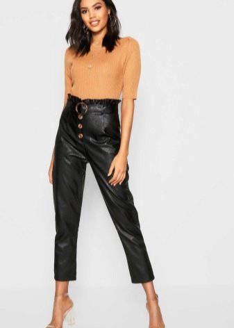 Moderigtigt erhvervelse til det kommende efterår kan overvejes læderbukser. Men de, stylister, er opmærksomme, bør ikke være stramme, men frit snit. Fashionistas anbefales at supplere en sådan garderobeartikel med et bredt bælte.