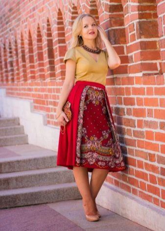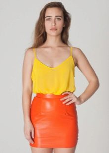 3. Nederdelens lave omkostninger maskeres perfekt af dens farve. Vær opmærksom på effekten af nedbrydning. Det er enkelt - tag et billigt orange nederdel og tilføj en gullig glad T-shirt eller top til den og røde sko på dine ben. Du kan lave en grøn top, smaragdskørt og blå sko. Du skal få en gradient.