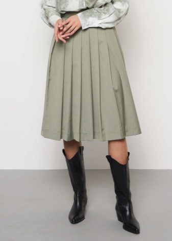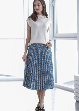 4. Billige nederdele bred plisseret ser dyrere ud end dyre, men med lavt.Jo bredere krølle, jo dyrere er den visuelle effekt. Besparelser er tydelige - et nederdel med brede plov kan endda købes til 900 rubler, mens mærket modeller undertiden når 25 tusind. Bær en nederdel med høje hæle.