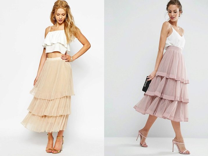 Derudover er lagdelte nederdele på mode denne sæson. Og derfor kan du med sikkerhed bære en oven på en anden, hente flyvende stoffer og smukke kombinationer af nuancer.