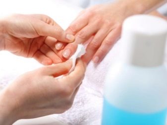 - Først skal du fjerne lakken fra neglepladerne.