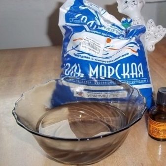 - Forbered en løsning. For at gøre dette, hæld varmt (36-42 ° C) vand i en praktisk beholder. Tilsæt salt og andre nødvendige komponenter til det i henhold til opskriften.