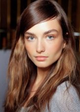 - Hvis du tager pigerne forår farve type, der har naturligt blondt eller ashy hår, lys eller ferskenhud såvel som grå eller blå øjne, så er det bedre for dem at vælge tilbageholdte toner af chokolade, hvor de naturlige egenskaber og fløjlsagtig hud understreges. I de fleste tilfælde anbefaler mestre ikke lfvfv-nuancer, der er for mørke og solide farver - fremhævet, og derefter vil strenge, der er malet i denne farve, se harmoniske ud.