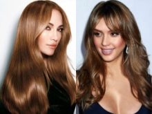 Mange piger, der beslutter at opdatere det kendte udseende, foretrækker en blød nøddeagtig nuance. Det passer perfekt til de fleste kvindelige farvetyper, ser passende ud i enhver situation og genoplører kedeligt hår fra naturen, hvilket giver det glans og silkiness.