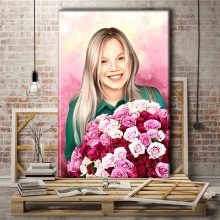 - et portræt af en fødselsdagspige med fototryk på lærred eller træ;