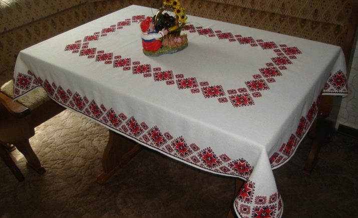 For eksempel kan dukerne på dugen strikkes, broderes, dekoreret med forskellige indretninger. Det eneste er, at en sådan gave ikke skal have små detaljer limet til basen. Du kan færdiggøre dugen med smukke servietter og gøre dem i en lignende dugdesign.