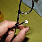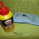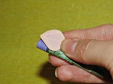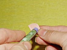 - Vi smører spidsen med PVA-lim ved hjælp af meget lidt klæbemiddel.