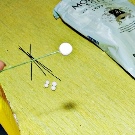 - Vi mærker på bolden med en saks og skubber forsigtigt med bladet.