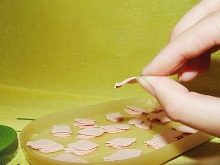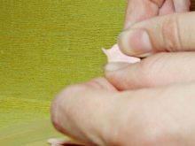 - Vi giver stykkerne med porøst materiale den ønskede form med saks. Resultatet er pæne detaljer - dette er blomsterblade.