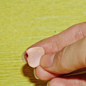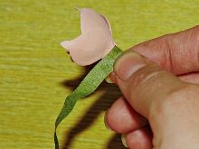 - Nu skal du give kronbladet en karakteristisk bådform. For at gøre dette, træk kronbladet i forskellige retninger med fingrene. Pas på ikke at rive materialet. Færdigvarer er som følger.