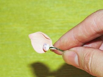 - Træk forsigtigt øverste hjørne af kronbladet op og drej det. Dette giver elementet den ønskede form.