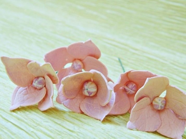 - Nu skal de give den nødvendige tekstur. Så kunstig hortensia vil være så ligner den virkelige som muligt. På dette tidspunkt har vi brug for et strygejern. Opvarm hvert element fra to sider, og tryk det ned til en opvarmet sål. Mens kronbladene er mørke, skal de presses mod formen (silikoneform). Dette er hvad der skulle resultere i slutningen.