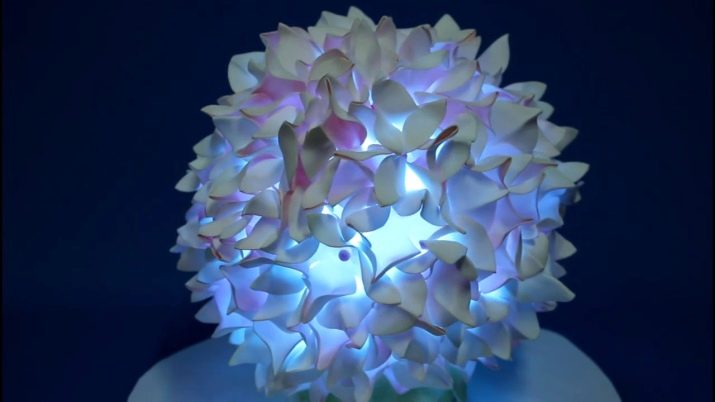- I dette tilfælde blev blomsterne brugt til at dekorere nattelampen. Her er et så vidunderligt produkt som et resultat.