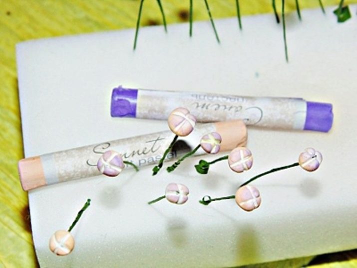 - For at gøre håndværket mere attraktivt skal du ved hjælp af pasteller tegne hvert emne langs kanterne og i midten.