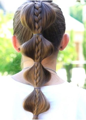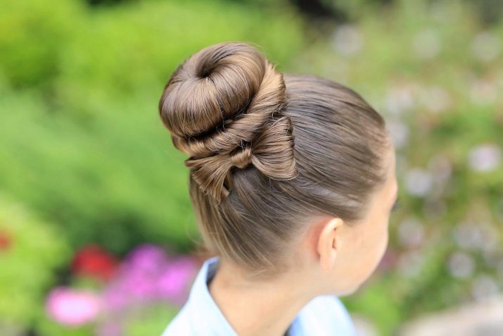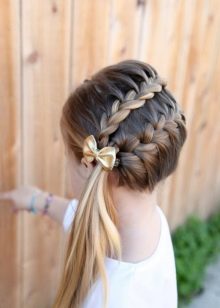 Forskellige skoler frisurer diversificerer Fransk fletning eller fisktail der væver over hele hovedet. Denne frisure er garanteret at vare en hel dag, derudover vil den være praktisk til klasser på et skrivebord eller i gymnastiksalen. Langt hår gør det muligt at lave en bue ud af dem. For at oprette det skal du samle den øverste del af håret og fange de temporale tråde på hver side. Derefter skal de føres gennem et elastisk bånd, men ikke helt trækkes ud en streng, hvilket efterlader en slags sløjfe. Denne løkke skal opdeles i to sider, og midten skal laves i buen med den resterende ende, og fastgør den ved hjælp af usynlighed.