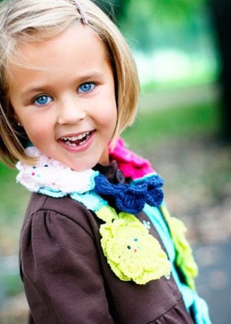 Hvis pigen har en kort klipning, betyder det slet ikke, at det ikke vil være muligt at lave en frisure på sådan hår. For at forberede pigen til skolen er det værd at bruge en række dekorative tilbehør, som ikke kun vil være en dekoration, men også gør det muligt at fokusere på det praktiske i den tilgængelige hårlængde. En række fælge, bløde hårnåle og usynlighed vil være efterspurgt, hvormed du kan fjerne trådene på siderne, hvilket vil gøre det lettere for barnets lektioner i lektionerne. Du kan også eksperimentere med at fastgøre forskellige krøller eller smell.