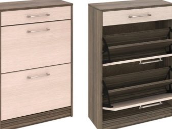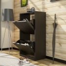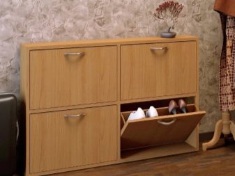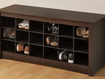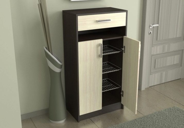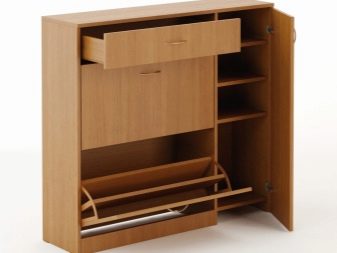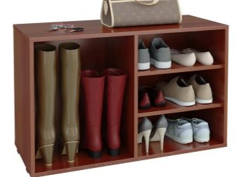 Den første mulighed indebærer fravær af vinger, det indvendige rum kan opdeles i vandret placerede hylder i flere lag eller firkantede hylder, hvor skabet opdeles i flere separate rum. I sådanne skabe er det mest praktisk at opbevare sæsonsko, det vil tørre ud ganske hurtigt, da der vil være god luftcirkulation inde.
