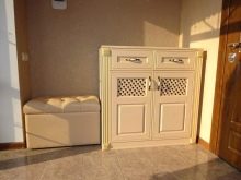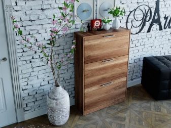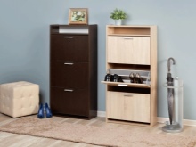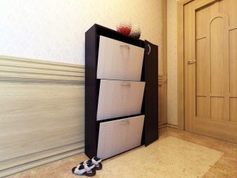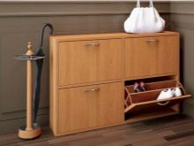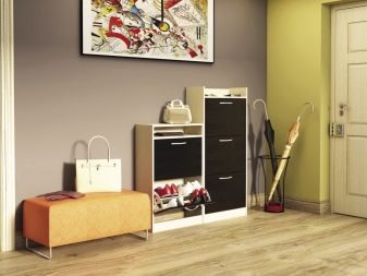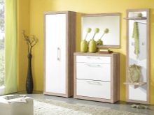 - Selv små skabe, som i de fleste tilfælde bruges til at rumme flere par sæsonsko eller for eksempel kosmetik, vil tiltrække opmærksomhed, så deres valg skal kontaktes grundigt i betragtning af stilen i hele rummet.