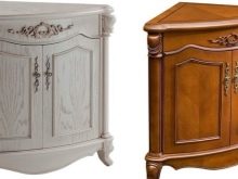 - For smalle korridorer ville det være mere passende at vælge placering af hjørnepedaler i nærheden af indgangen eller ved den modsatte væg. Som regel vil sådanne design være af åben type, hvilket letter adgangen til de nødvendige ting.