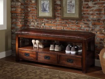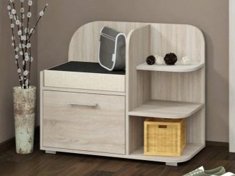 En interessant funktionel løsning vil være brugen af piedestaler med et sæde placeret i midten. Sådanne møbler vil være en god mulighed for at arrangere gange, derudover vil skuffer og hylder placeret på siderne hjælpe med at opbevare de nødvendige ting i direkte adgang.