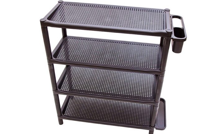 Denne mulighed er ikke kendetegnet ved dens styrke, så polymerer fremstiller som regel små åbne skabe, hvor kun sæsonsko ofte opbevares. Syntetiske råvarer er bemærkelsesværdige for let pleje, de absorberer ikke lugt, men sådanne produkter kan ikke modstå tunge belastninger.