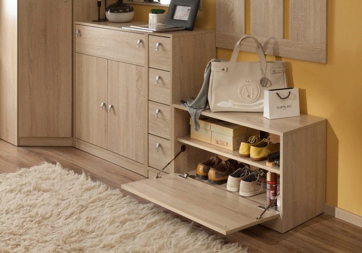 Skabets vigtigste træk er dets alsidighed, i lyset af hvilken der indeni det ikke kun kan opbevares ting, sko og tilbehør, men også andre nyttige ting, som ikke altid er muligt med hylder eller stativer. Som oftest opbevares sæsonbestemte sko i skabene, såvel som små ting, kan det øverste låg på strukturen bruges som sæde eller overflader til dekoration, telefon osv.