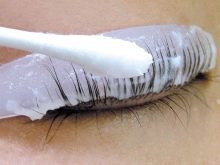 - Hvis det er nødvendigt, kan du kamme flimmerhåret og tørre øjenlåget med en fugtig klud.