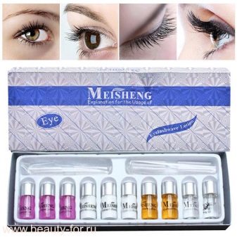 I butikkerne med professionelle salonprodukter kan du finde specielle sæt til permanent øjenvippekrulning derhjemme, der indeholder alt hvad du har brug for: så du ikke glemmer de vigtige komponenter og udfører proceduren korrekt.