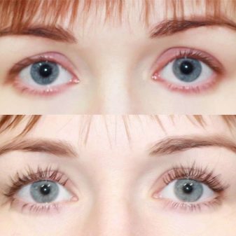 - Nogle piger har en lysning af håret, hvilket mange gange reducerer effekten af proceduren, da det med lette øjenvipper praktisk talt ikke er synlig. Heldigvis løses dette problem meget hurtigt - du skal kontakte en professionel til farvning af øjenvipper.