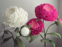 Men ikke kun roser kan fremstilles af bølgepapir. Fra dette materiale opnås bare smukke pioner. De gøres lidt anderledes. Når du laver dem, tilrådes det at holde instruktioner til rådighed, især hvis dette er din første gang, du gør det. Først skal du forberede følgende komponenter: