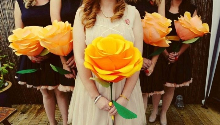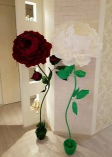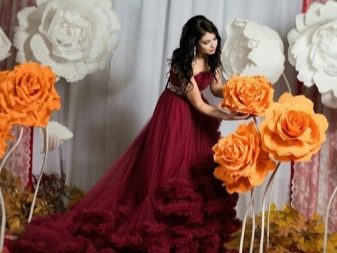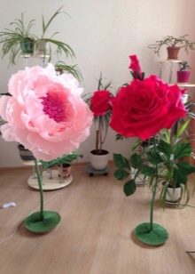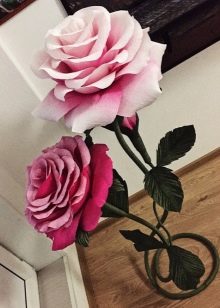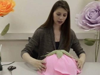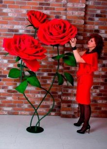 - For at skære kronblade eller blade anbefales det at forberede stencils og skabeloner på forhånd. Med sådanne komponenter til at fremstille en pæn og attraktiv blomst i store størrelser, vil den blive markant forenklet - der vil ikke være nogen detaljer, der adskiller sig skarpt fra andre elementer.