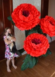 - Resultatet er en meget smuk og solid pæon, der kan bruges som en festlig hovedbeklædning eller suppleret med en hjemmelavet stamme lavet af tråd, og derved konstruere en spektakulær dekoration til enhver begivenhed.
