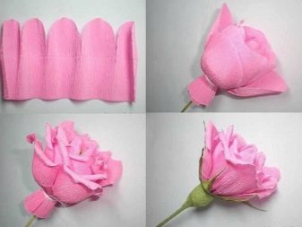 Resultatet skulle være en lang strimmel med legende charmerende krøller. Det eneste, du skal gøre næste, er at sno dette materiale til en frodig knopp. I bunden skal det sikres godt med en stærk tråd. Fra en tråd og en særlig floristisk fletning vil det være muligt hurtigt og nemt at fremstille en pæn og attraktiv stilk i stor højde. Når du har fastgjort sin kerne og korrekt spredt alle kronbladene, vil det være muligt at få en meget smuk og solid vækstros.