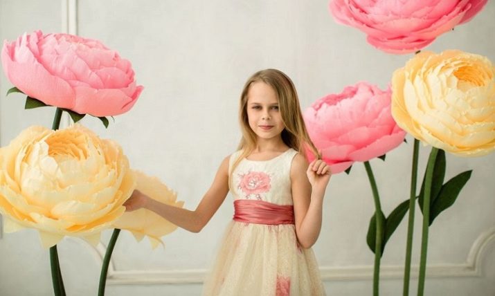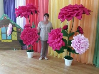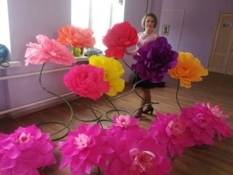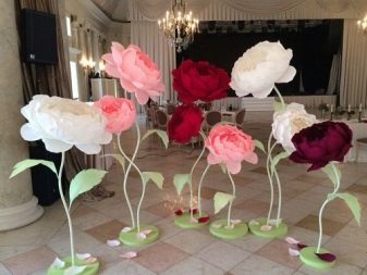 Sådanne interessante og attraktive installationer som vækstblomster ser meget elegante og rige ud. Navnet på disse produkter taler for sig selv - de er kendetegnet ved stor højde. Sammen med stilken kan en vækstblomst nå 150-250 cm. En meget interessant visuel virkning skabes, hvis en voksen står ved siden af en så spektakulær dekoration. I dette tilfælde ser det ud til, at manden eller kvinden faktisk er meget lille, fordi der er en enorm blomst i nærheden af dem.