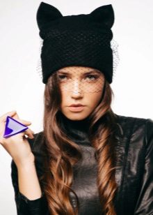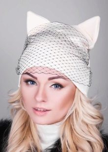 På trods af advarslen om ikke at kombinere sådanne hatte med aftenkjoler tilbød designerne deres egen version af hatte med ører og med et lille slør. Det ser meget elegant ud og tilføjer mysterium til ejeren af en sådan hovedbeklædning.