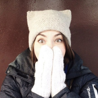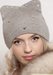 Det er også værd at bemærke, at ikke alle måske har kasketter med katteører. De ser godt ud på runde og trekantede ansigtsformer. For dem med et ovalt ansigt kan en sådan cap-stil kun forlænge ansigtet. I betragtning af de forskellige former er det dog værd at eksperimentere for eksempel med fluffy hatte, der skjuler ansigtets form.