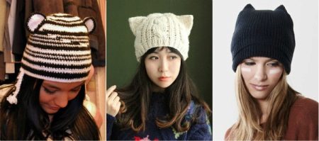 I betragtning af at hatte med katteører vinder meget popularitet blandt den kvindelige halvdel, præsenterede næsten alle de førende modemærker i deres produkter deres stilarter af kattehatte. Hver forsøgte at finde noget andet, der adskiller dem fra andre. For eksempel tilføjede hatte af sådanne moderigtige mærker som Louis Vuitton og Chanel mousserende elementer til hovedbeklædningerne i form af mousserende rhinestones og krystaller. De dekorerede ørerne, og på forsiden af hætten er der et ikke mindre lyst mærke-logo, også smukt skinnende i lyset af solen eller lanterner.