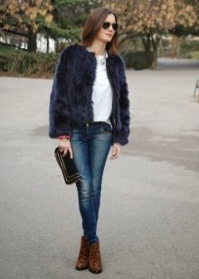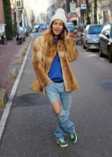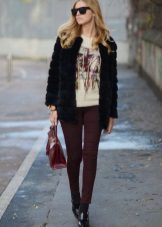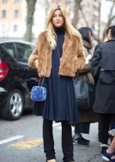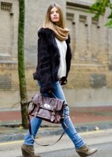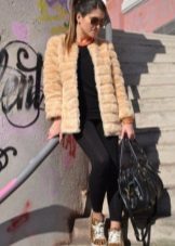 Generelt kan korte pelsfrakker med en hætte kombineres med næsten ethvert garderobeelement: fra en strikket kjole og over-knæstøvler til en trøje med et nederdel og støvler på ru såler eller denimoveraller og uggs.