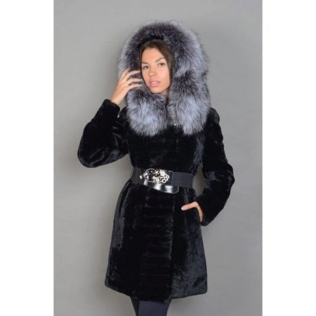 En fremragende kombination af en sort mouton og en sølv rævskind danner dette hyggelige og elegante look, der passer til selv på de hårdeste vinteraftener. Et bredt læderbælte med en dekorativ fastgørelse understreger en yndefuld talje.