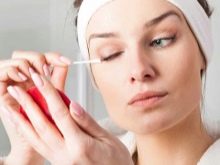 - tryk forsigtigt på fingerspidserne til øjenvipperne og gnid derefter forsigtigt;