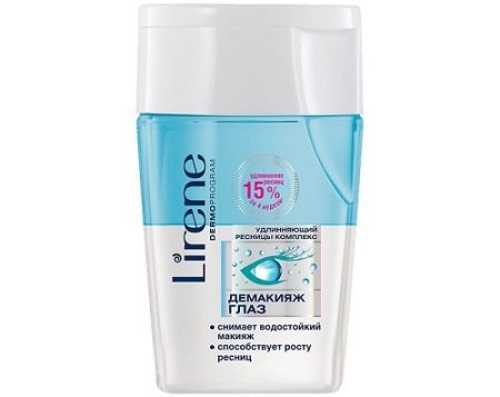- To-fase væske fra Lirene - Dette er et meget effektivt budgetværktøj, der ikke har aggressive komponenter. Denne tofasevæske umiddelbart efter blanding af to lag af sammensætningen er i stand til at fjerne selv den mest resistente dekorative kosmetik.