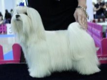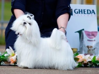 I henhold til racestandarden skal pelsen af en maltesisk hund til udstillingen overstige højden i manken med 5-10 cm i længden. Når dyret bevæger sig, flyder dets pelsfrakke med en kappe, i en statisk position skal den ligge smukt og danne en klar, grafisk silhuet. Korrekt udført udstillingspleje understreger fordelene og skjuler godt ulemperne.