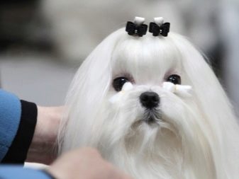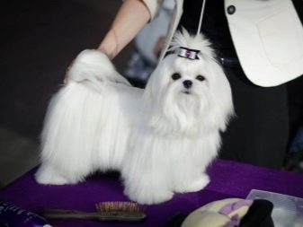 Maltesisk hårpleje til en udstilling kræver en særlig grundig tilgang. Længden på pelsen skal være maksimal - 5-10 cm længere end hundens højde ved manken. Enderne af det ydre hår er trimmet for at danne en smuk og klar linje. På poterne i poterne, i det anale område, fjernes overskydende hår. Topnoter dannes på hovedet - hestehaler, danner en klar og jævn afskedelse og når kroppen.