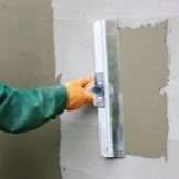 - Det er nødvendigt at slippe af med alle defekter på væggene. Revner og hulrum er kitt, og derefter fladt ud.